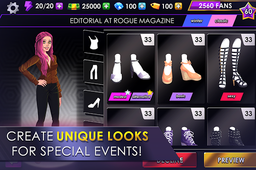 • Ubierz topową modelkę gwiazdy na czerwony dywan. Stwórz wspaniały pokaz mody i zobacz, jak rozwija się Twoja kariera projektanta ubrań! Zostań gwiazdą i odnieś sukces i sławę w Miami, Paryżu, São Paulo, Mediolanie, Sydney i Madrycie.